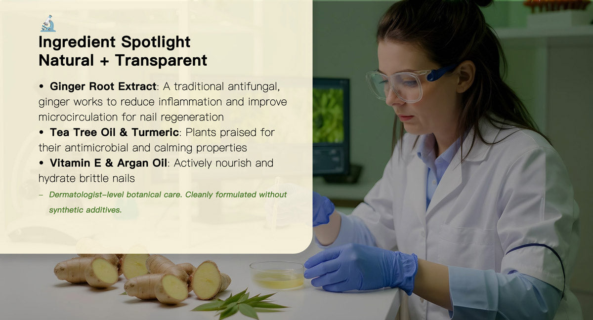 Unlike traditional nail fungus products that rely on acids or oral medications, Ginger Nail Rescue Oil harnesses natural botanicals to restore without irritation or dryness.